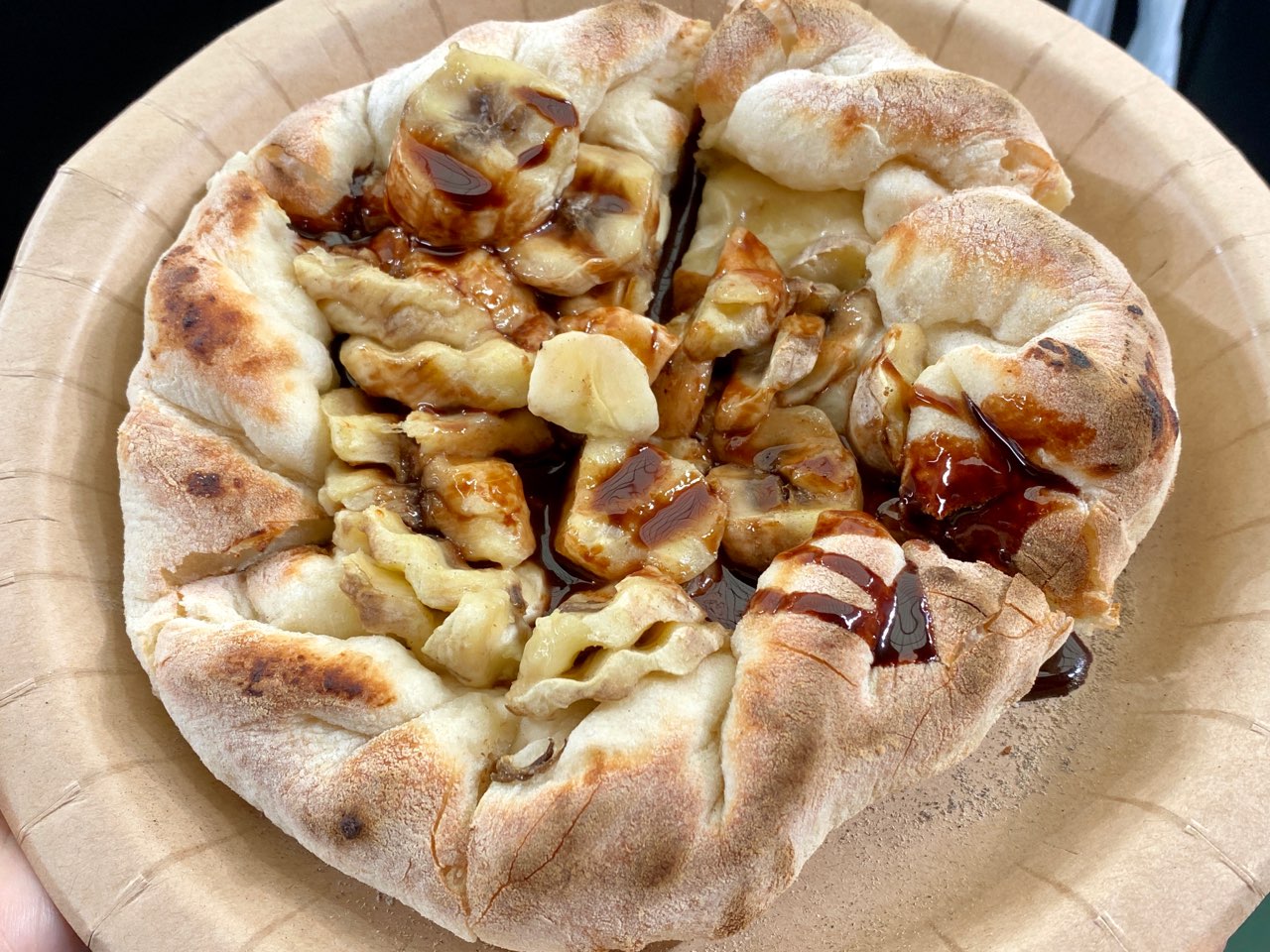 あと、とにかく評判がよかった「L’s CRAFT」という店でチョコバナナのコロラドピザを食べてみたけど、生地が焼きたてアツアツのモチモチふっくらで納得のウマさでした。