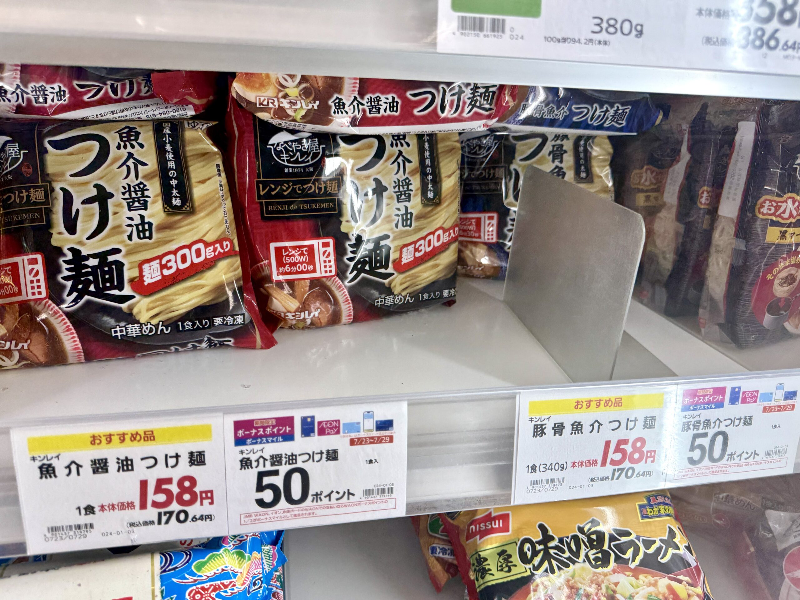 セブンのとみ田冷凍つけ麺もいいけど、個人的に一番推してるのはキンレイのこのシリーズ。なんせ安い。先日はイオンで税込170円から50ポイントバックで実質120円…!