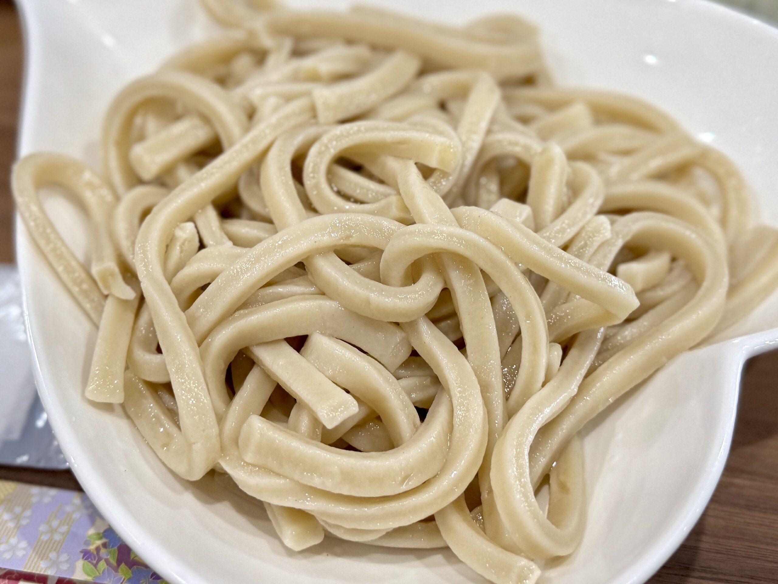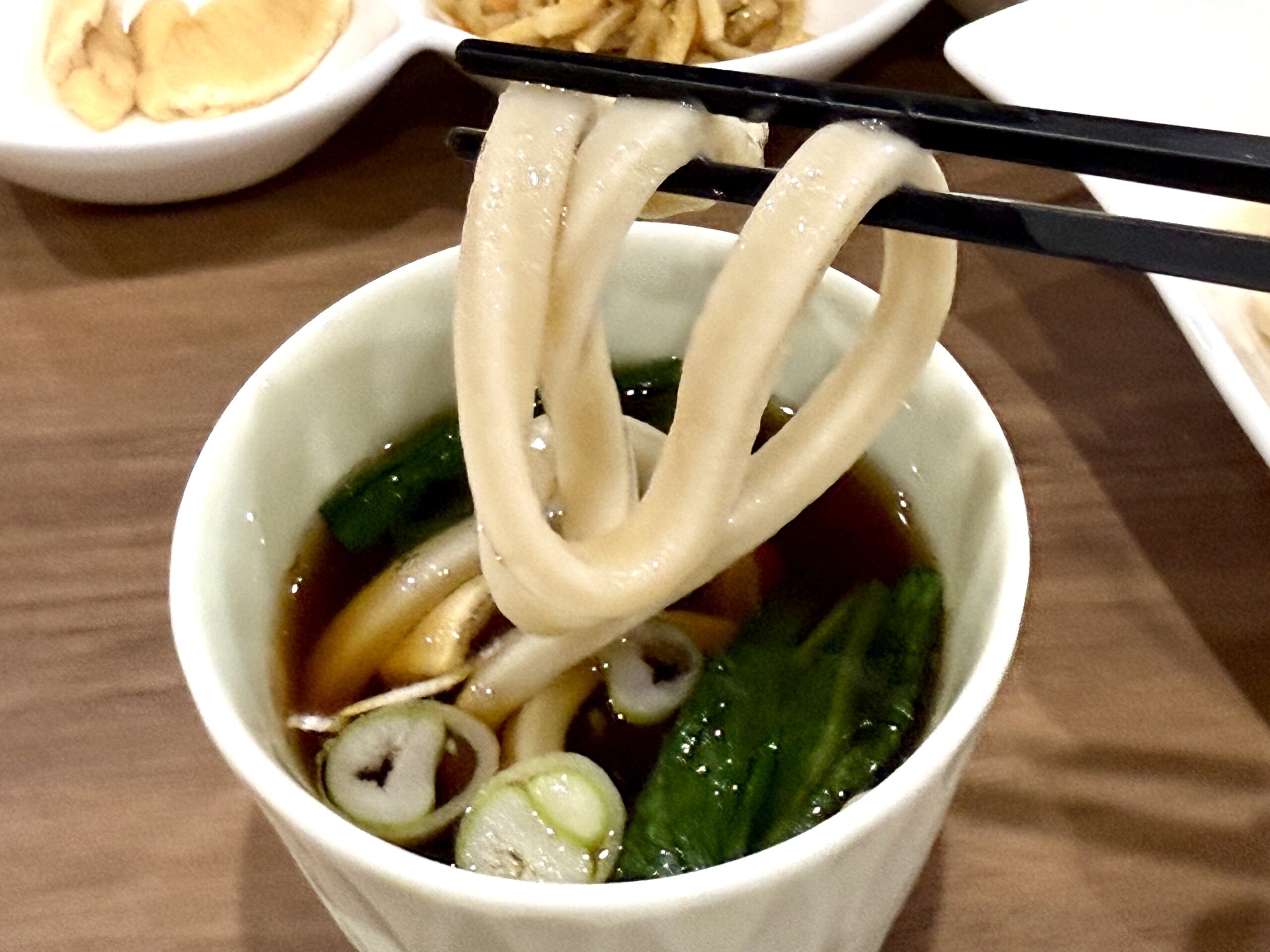 いざ食べてみると、麺は超ガチガチですごい! 設備を考えるときっと冷凍うどんなんだろうけど、この麺を仕入れられるのは素晴らしいチョイスですよ。