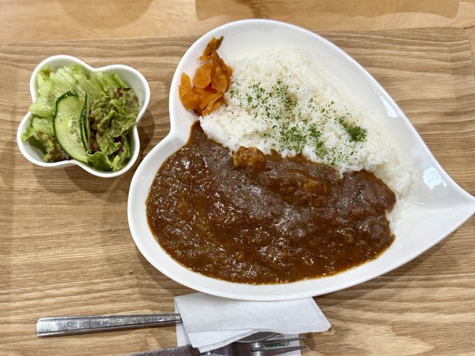 ちなみに同行者はカレーを注文。これ、普通なら「じっくり煮込みました」とか書くんだろうけど、「スタッフが厳選」「スタッフがおすすめのカレーを使用」って書いてあるのが実に潔くていいなあと。聞いてみたら「スタッフでいろいろレトルト商品を味見したうえで選びました」と。笑