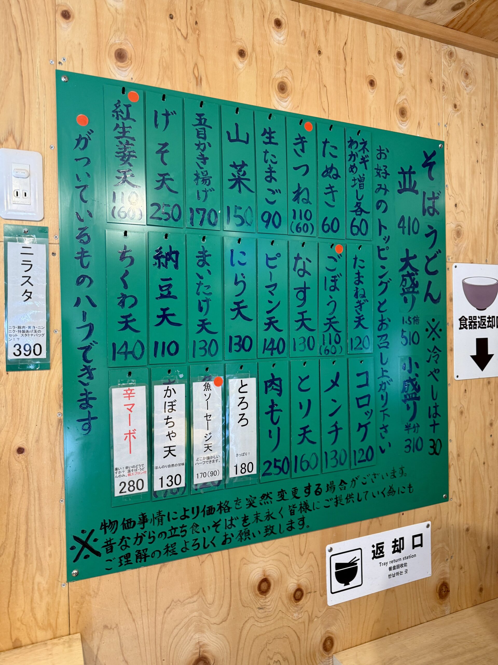 こちらは天ぷらなどと同じくトッピング扱いになっていて、ほかのトッピングと組み合わせることも可能。ただし、温かいうどん・そば限定で、冷たいメニューへのトッピングはできないようです。
