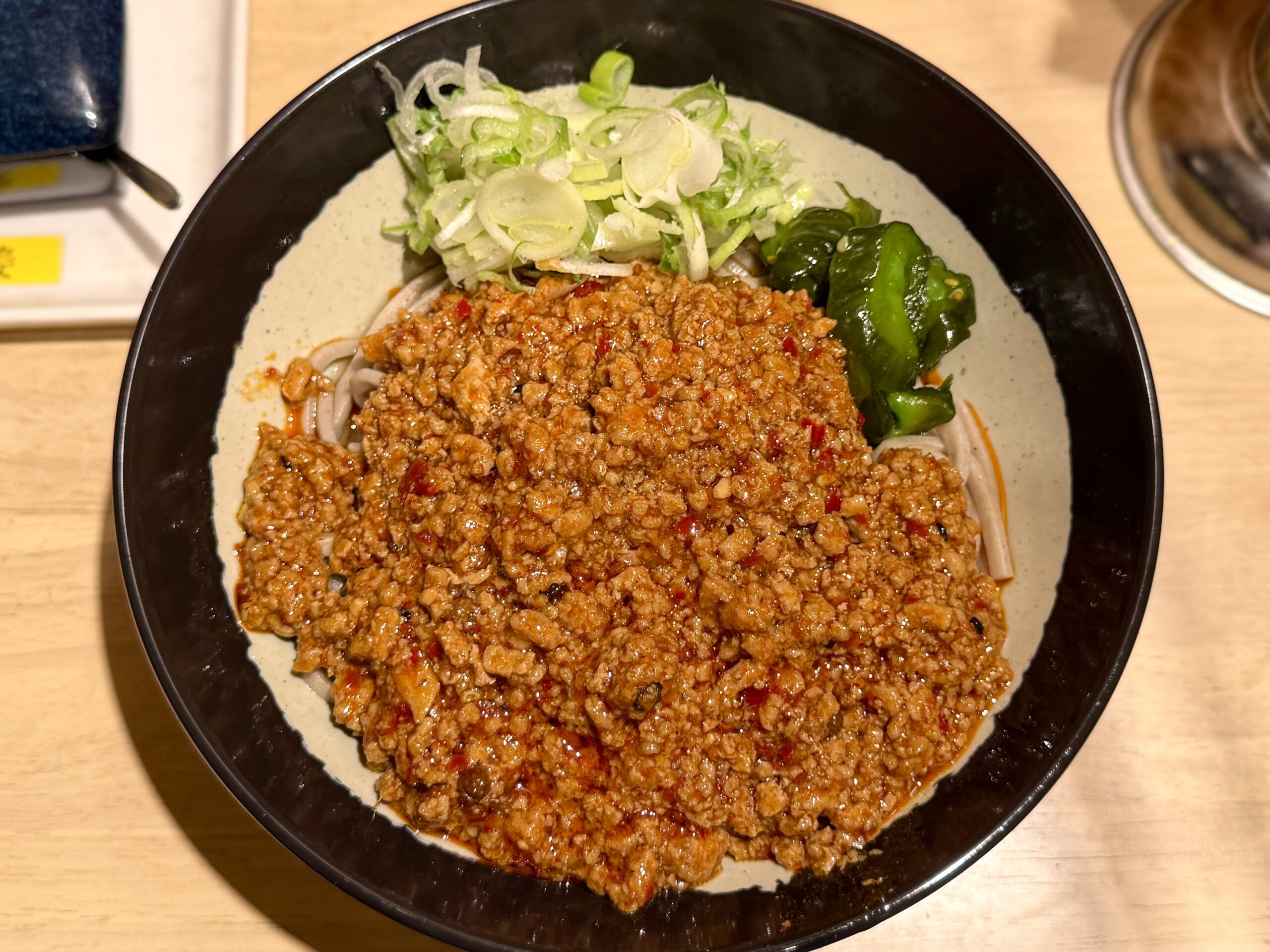 激辛メニューの辛マーボーそばをいただく。辛さもシビレも強烈で、出汁との調和も見事!こりゃうまい!