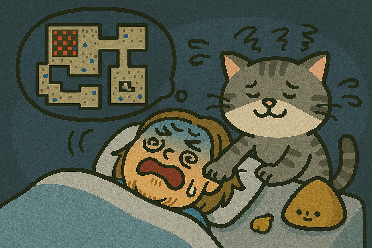 再びベッドに入ったら昼間ずっと寝ていた割にはいつも通り寝られた。目を閉じるとまぶたの裏にシレンのマップが浮かんだ。