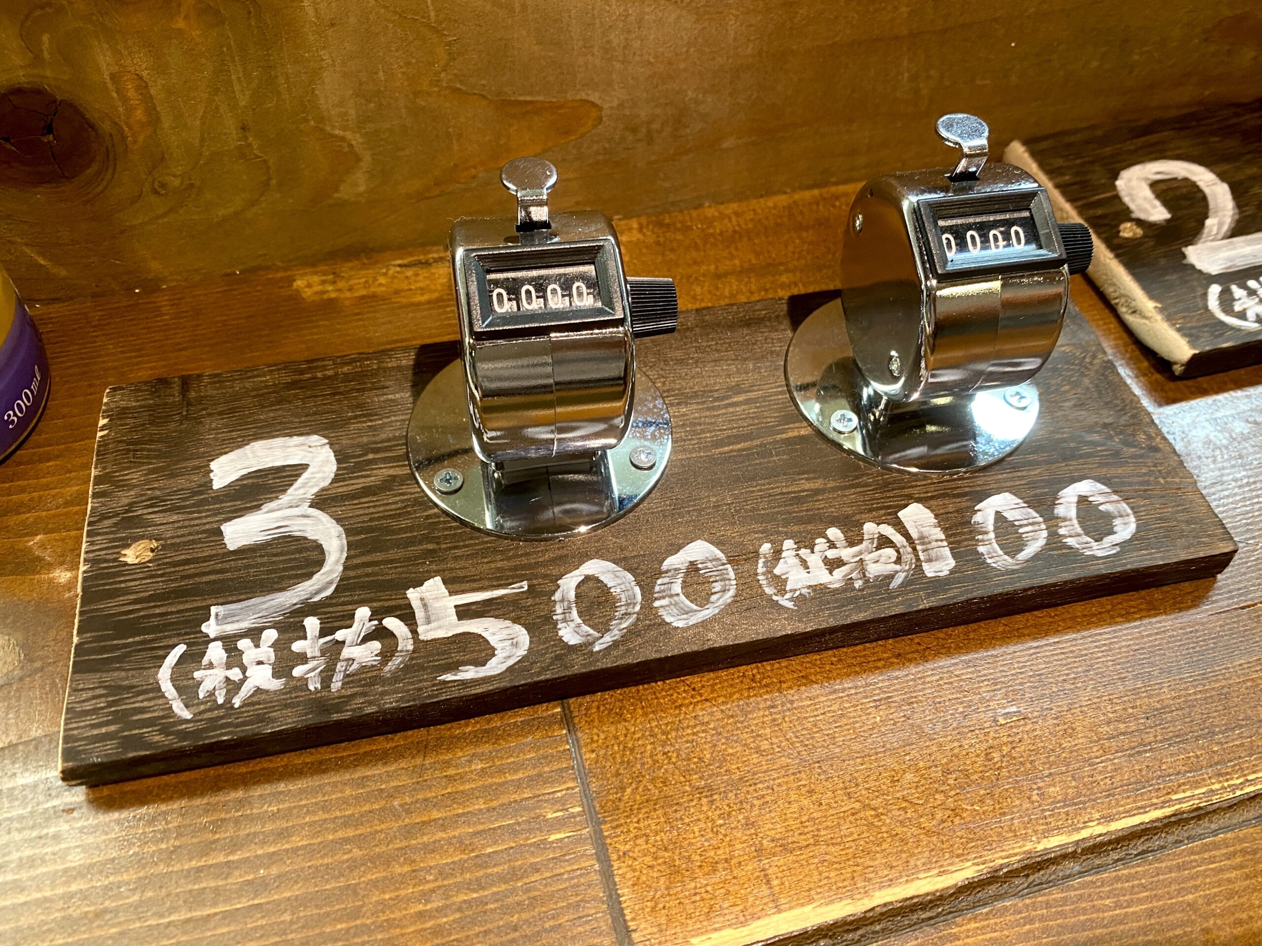 価格はおつまみが300円〜。日本酒は0.5合で500円〜、1合で900円〜。その他酒類もだいたい500円から。卓上のカウンターで金額を都度上乗せしていくシステムが独特でおもろい。泥酔して連打とかしないように注意しないとな……。