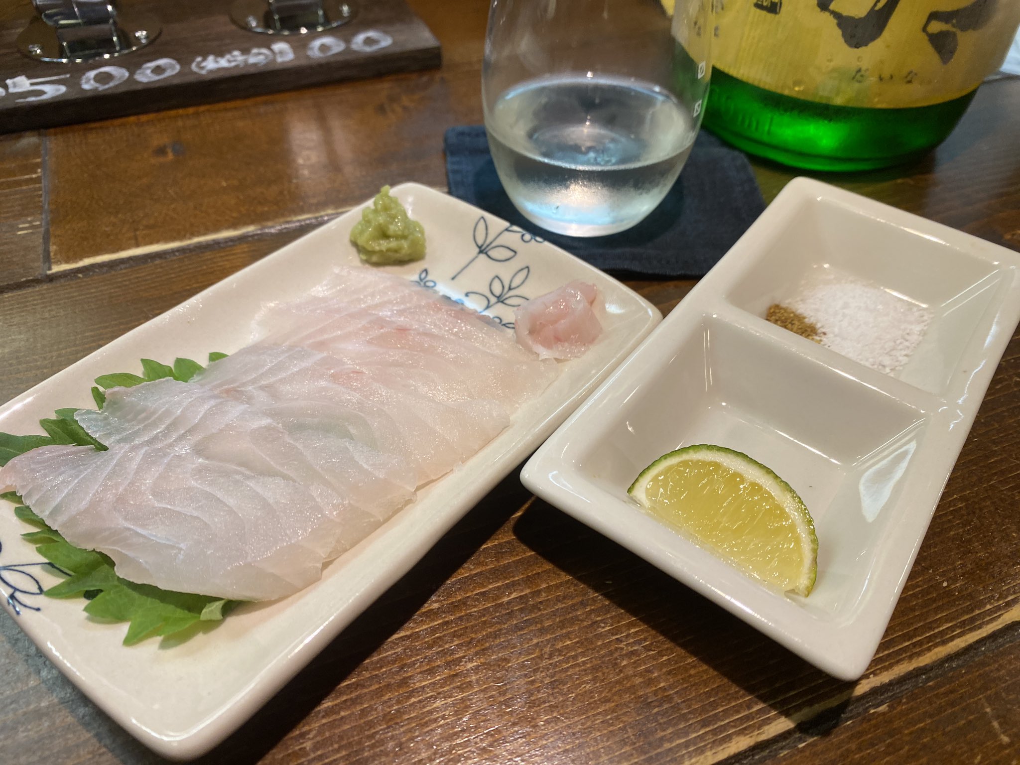 料理は刺身なんかもあって、五島列島の漁師が一本釣りしたものを熟成させて出しているらしい。