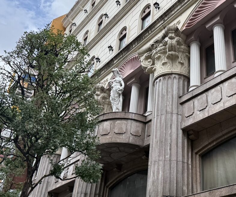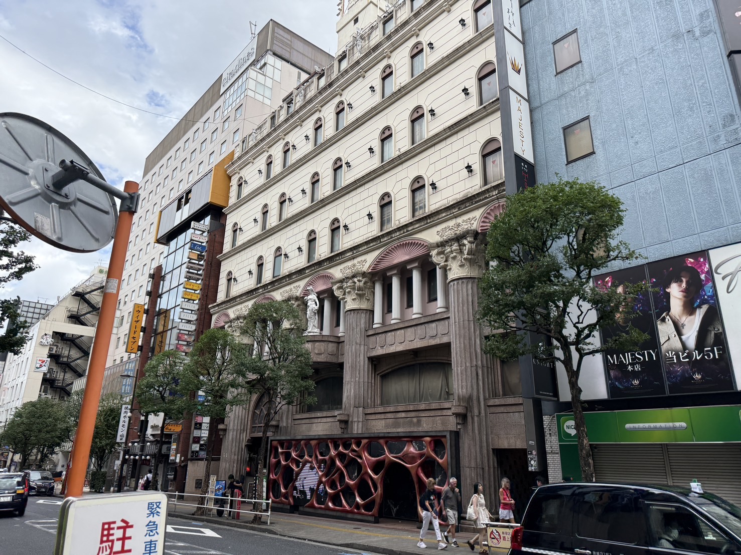 1階部分の怪しげな装飾と、上の方になんか石像があるのが目印です。