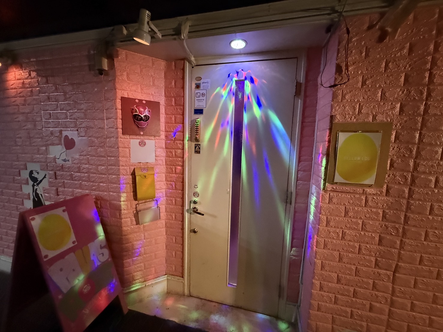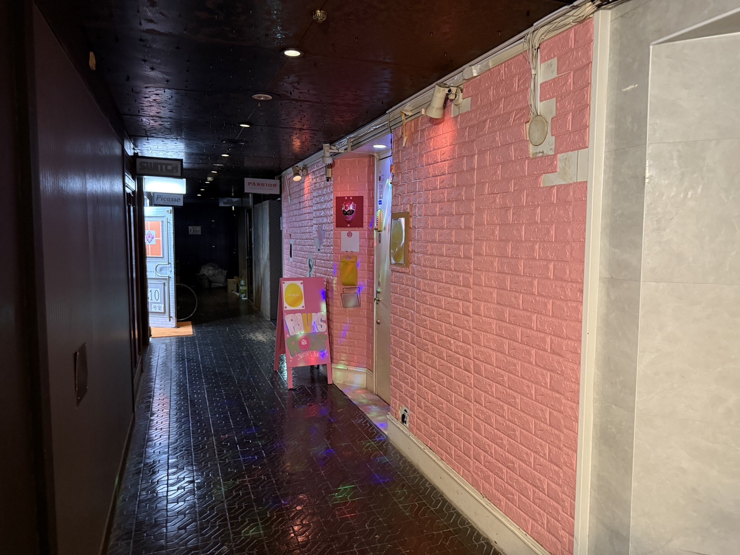 6階で降りると壁がピンク色の怪しげな店が出てきます。