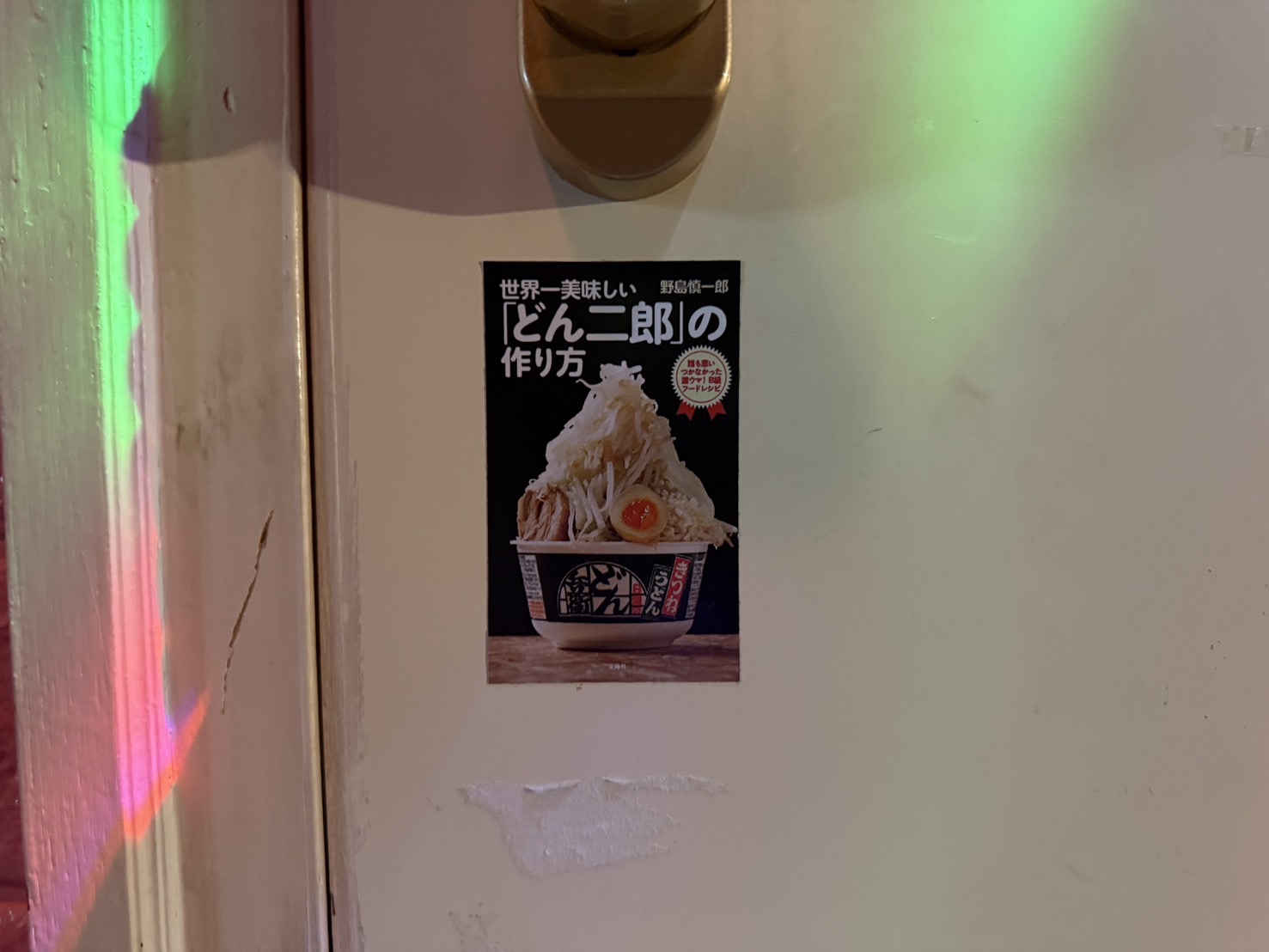 ドアノブの下に「どん二郎の作り方」のステッカーを貼ってくれているのが目印です。びびらずドアを開けましょう。