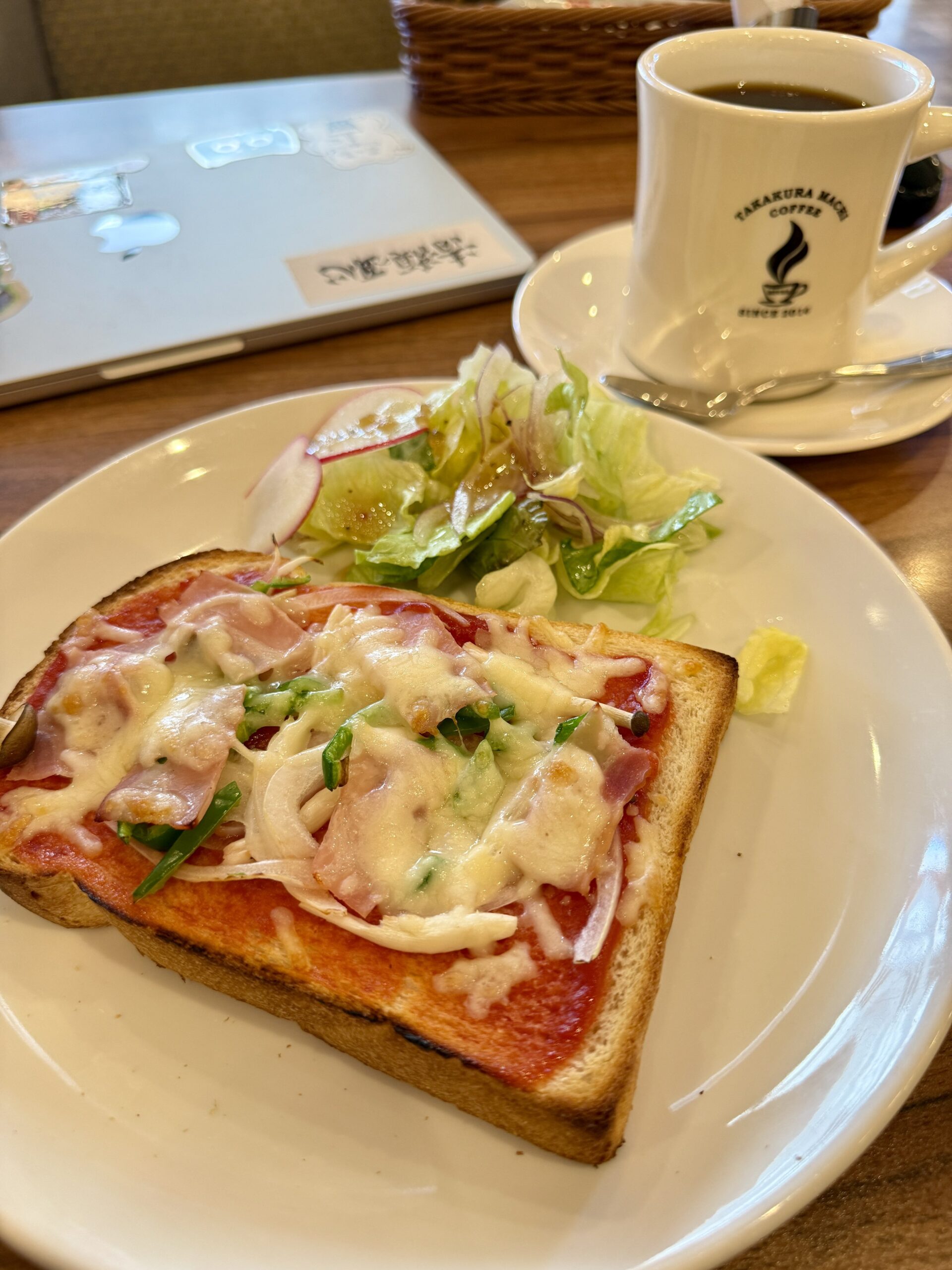 ってことでこの日はピザトーストを注文してみたところ、ちゃんと具がモリモリ乗ってるし、ソースもチーズもたっぷり。なんならサラダまでついてきちゃう!