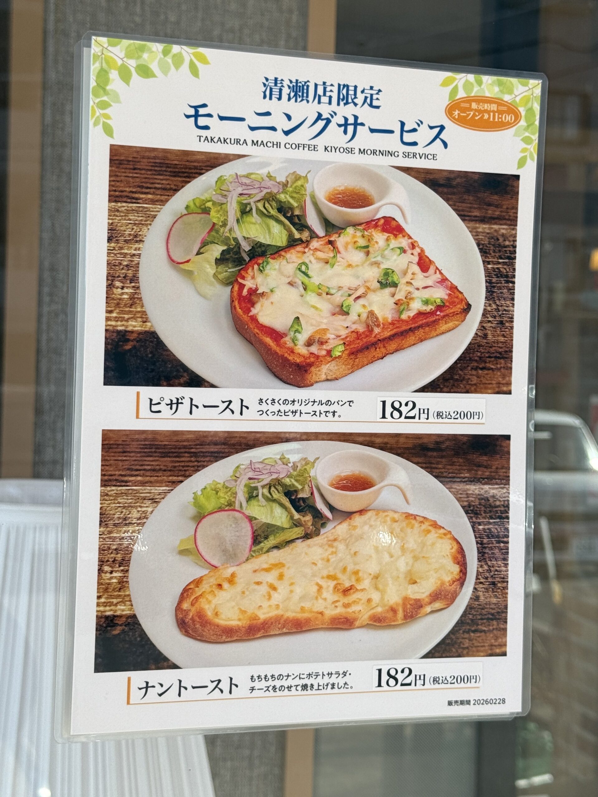 ところが……! なんと清瀬店限定のモーニングサービスなんてのが始まっているじゃあないですか!