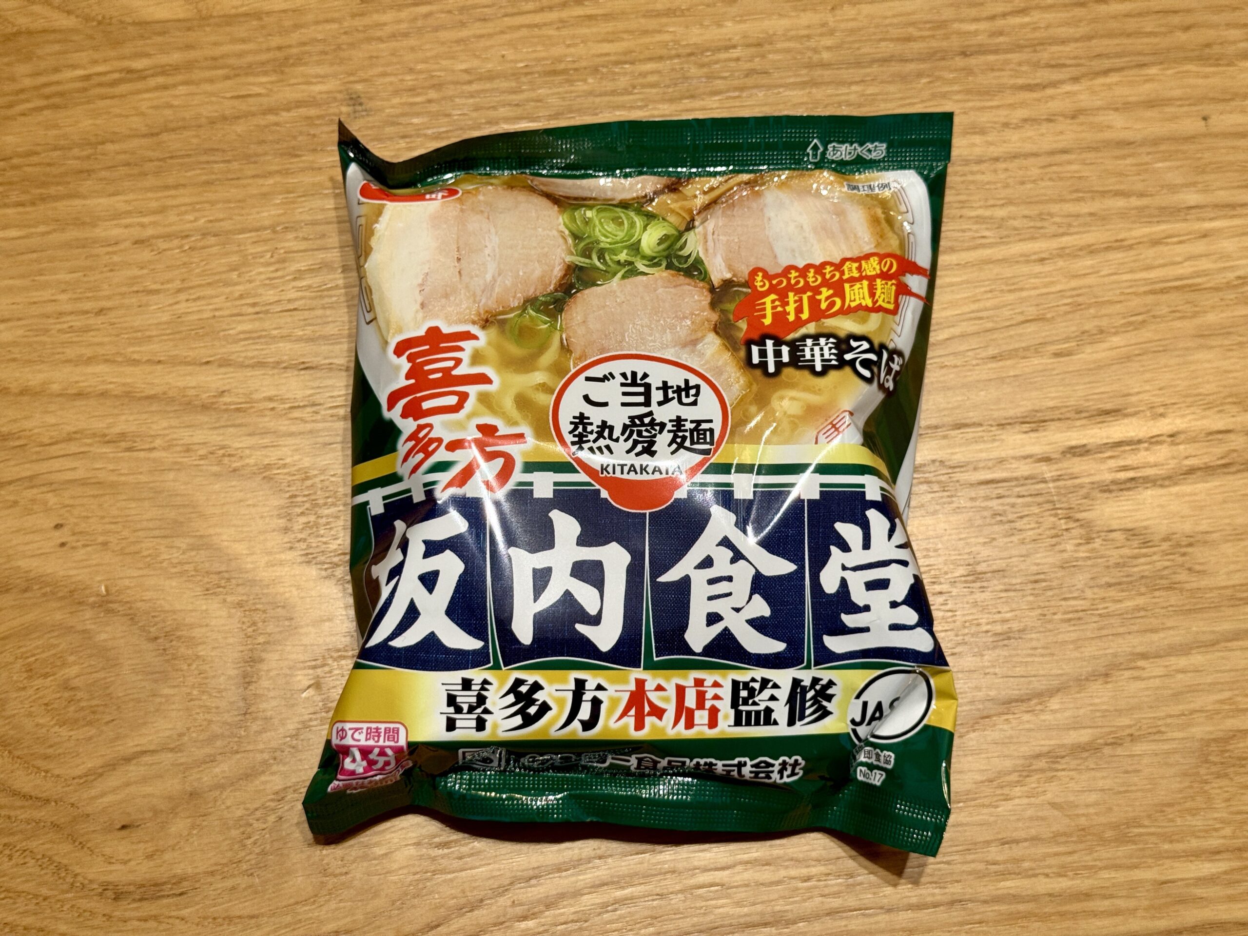 正式名称は「サッポロ一番 ご当地熱愛麺 坂内食堂 喜多方本店監修 中華そば」。3食パックで売っていました。
